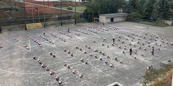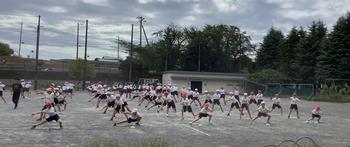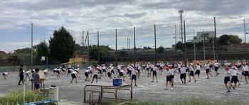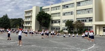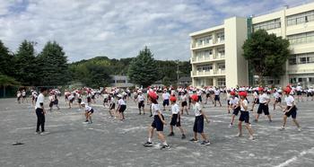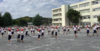 9月30日 5・6年生合同、校庭でのソーラン節の練習。体育館のようには声が響かないので、一段と声出しを頑張っている子どもたちもいました。