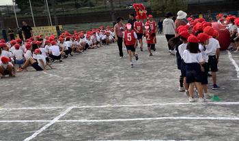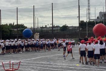 子どもたちが話をよく聞いてしっかり動けたので、スムーズに流れ、たくさん練習ができました。大玉送りは白が勝ったり赤が勝ったりして、本番までどちらが1位をとれるか分からないどきどきの展開になっています。(今日は、ほとんど同時にゴールの台に大玉がのせられた勝負があったので、練習ではありますが、どちらが1位かビデオ判定を行いました。)