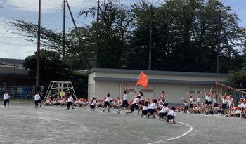 応援合戦は、つくった応援グッズも使いながら、声をしっかり出して頑張っていました。ウェーブもうまくできるか、当日も楽しみです。