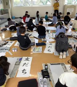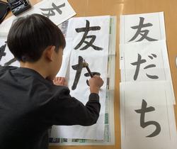 とめやはらいに気を付けて一生懸命書いていました。まだまだ思うように書けないという子どもたちもいましたが、冬休みにもきっと書き初め(練習)をして、心のこもった立派な「友だち」が書けるようになると期待しています。