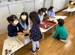 12月23日 1年生が近隣保育園の年長の子どもたちと交流しました。生活科の「あきとなかよし」で活動した内容ごとのブースに招待。保育園の子どもたちも1年生の子どもたちも、「にこにこ」がいっぱいあふれていました。1年生がお兄さん・お姉さんの表情になり、とてもやさしく保育園生に接している姿がほほえましかったです。