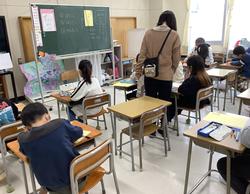 各教室から元気な子どもたちの声が聞こえています。しいんと静まった中で休み明け漢字テストをしたり、2026年の抱負を書いたりするクラスも。