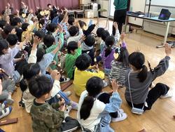 3月6日 外部講師による「リコーダー教室」の学習がありました。2年生の子どもたちは、いろいろな大きさのリコーダーを紹介してもらうと、その小ささ、大きさに驚いたり、演奏に感心したりと、歓声をあげていました。