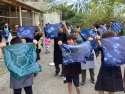 令和7年11月6日(木)愛川遠足に出かけました。まず、宮ケ瀬ダムを訪れ、流れる水やダムのはたらきについて理解を深めてきました。次に愛川繊維会館レインボープラザで、藍染め体験をしました。体験を通して、日本の伝統文化のよさにふれることができました。集団行動の約束を守り、施設見学の仕方やマナーなどを身につけることができた充実した活動となりました。