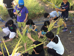 9月は、スイカ割りをしました。6~7組が畑で育てたスイカで楽しくスイカ割りをしました。みんなで割る人に声援を送ったり、どこにスカイがあるかなど声をかけたりしていました。割った後には各教室で美味しく、食べました。子どもからは、「スイカが美味しかった。」、「スイカを割るのが楽しかった。」、「何回も叩いて割ったのが楽しかったし、すごく美味しかった。」などの感想があがっていました。
