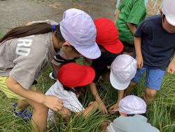 生活科「いきものとなかよし」の学習で、学校の生き物探しをしました。校庭に出ると、バッタやイモムシ、蝶、トンボなどが見つかりました。バッタはとても逃げ足が速く、捕まえるのが難しかったですが、こつをつかむとたくさん捕まえていました。「そーっと近づいて、さっと捕まえるとうまくいくよ!」とアドバイスをしていたり、じっくりと観察して「このバッタの触覚がすごく長いよ!」と気づいたことを話したりしていました。