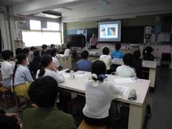 NPOブルーアースのみなさんに来ていただき、炎色反応の授業をしていただきました。中学校で学習する内容でしたが、実験を通して楽しみながら学習できました。理科への興味関心が少しでも高まってくれたらと思います。後半は、科学者・技術者の仕事について経験談をお話いただきました。子どもたちへのエールもいただき、自分のキャリアについて真剣に考える機会になりました。