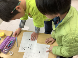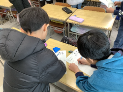 外国語活動で、生活科の学習で一人ひとりが育てている冬野菜の英語の表現に、アクティビティを通して慣れ親しみました。最後には、友達と好きな野菜について伝え合いながらビンゴゲームをしました。「What vegetable do you like?」と質問し、「I like~」と答え、やり取りを楽しんでいました。 |