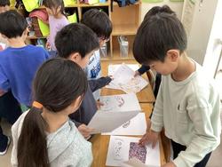 国語「ものの名まえ」で学習したことを生かして、お店屋さんごっこをしました。1組、2組でお互いに招待し合い、お店屋さんとお客さんに分かれて楽しみました。「いらっしゃいませ。」「いくつほしいですか。」「ありがとうございます。」など、場や立場に合った言葉遣いをしてやりとりができていました。それぞれのクラス独自のお店があり、とても楽しそうでした。1年生の漢字の学習もすべて終え、2年生への準備を進めています。 |