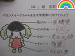 子どもたちに大人気の食育キャラクター「バランスイ~ナちゃん」が五大栄養素で作られていて、さらにそれぞれの部位の大きさが、とって欲しい量を表していることを学びました。