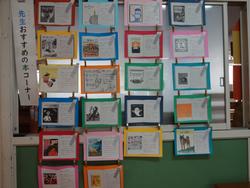 11月は読書月間です。スタンプカードやしおりコンテスト、図書館宝くじ、先生おすすめ本コーナー、お話給食など、様々なイベントを図書委員会の子どもたちが計画してくれました。ボランティア「きらきらの会」の皆様による飾りつけ掲示や本の紹介、「ふんわりの会」の皆様による読み聞かせなども、子どもたちは大好きです。本当にありがとうございます。この秋、たくさんの本と出合えるように支援していきます。