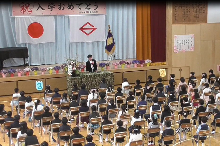 入学式では、111名の新入生を迎えました。1年生は緊張しながらも、座る、立つ、話を聞くなど頑張る様子がとても微笑ましかったです。ご入学おめでとうございます。