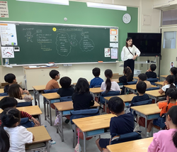 先日、産休に入った養護教諭にゲストティーチャーとして参加してもらい、お腹の中から命が始まっていること、へその緒でつながっていたこと、そして、お腹の中に赤ちゃんがいるときの家族の気持ちについて話してもらいました。