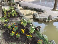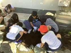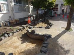 子どもたちが、市のみどり環境局にお願いをして、池をビオトープ化するための工事をしていただけました。池に砂を入れたり、周りの土地を整備していただいたりしました。10月17日(金)には、池の周りにマリーゴールド、ウメモドキ、ミソハギの花苗を植えました。栽培委員会の児童も、休み時間に手伝ってくれました。池がどんどん変身しています。