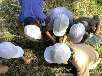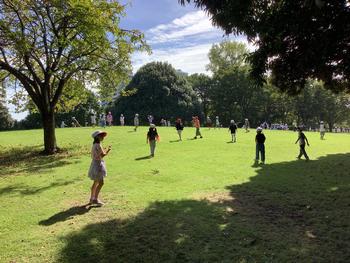 1年生が初めての遠足で保土ケ谷公園へ行きました。公園では「秋探し」をしたり、「クラス遊び」で元気いっぱい遊んだりしました。