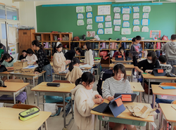 4年1組では、総合的な学習の時間に「ゆるスポーツ」に取り組んでいます。「ゆるスポーツ」は誰でも気軽に取り組むことができるスポーツで、それを通して地域に住む方の体力向上を目標として活動しています。今後は地域の方を招待して、体験してもらう予定です。