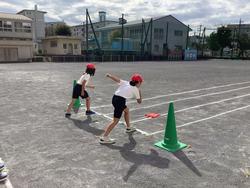 10月に入り、運動会に向けての学習がスタートしました。運動会の徒競走などの走順を決めたり、以前の自分のタイムの変化を把握したりするために、50m走のタイム測定を行いました。スタンディングスタートの仕方や、ゴールラインの奥まで全力で駆け抜けることなどを確認し、2回測定しました。