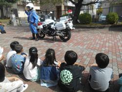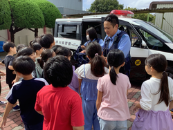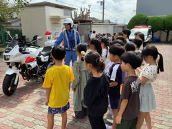 子どもたちは、目の前にいる警察の方々やパトカー、白バイ、警察の装備品などに目を輝かせていました。身を守るための装備品の重さや頑丈さに驚きの声をあげていました。また、積極的に質問をするなど、充実した時間を過ごすことができました。
