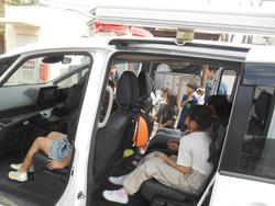 体育館で、警察の仕事や110番のしくみ、事件や事故が起こった時の連携の仕方などについて話を聞いたり、外で実際に移動交番として使用しているパトカーや白バイにのせていただいたり、パトカーに積んでいるものを身につけさせていただいたりしました。