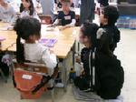 桜井小学校の特色ある教育活動(交流)に1年生~6年生の異学年で構成される「たてわりグループ」があります。今日は始めてなので顔合わせを行いました。6年生の班長を中心に、名刺交換のカードを仕上げたり、自己紹介をしたりしました。どのグループも6年生が1年生の目線に合わせて、膝をつきながら対応している姿が印象的でした。これから1年間このメンバーで、集会など遊びを通して仲を深めていきます。もう一つ「なかよしグループ」というペア学年(1・6年、2・4年、3・5年)の交流活動もあります。どちらも人とのつながりを大事にしていきます。