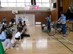 毎年校庭に横断歩道や交差点、信号機を設置して実施している「交通安全教室」ですが、今年度は雨のため体育館で交通安全に関する学習を行いました。1・2年生は体育館に信号機や横断歩道を設置して、安全サポーターの保護者の方が見守る中、実際歩きながら正しい歩行の仕方を身につけました。3年生は自転車の安全な乗り方について学びました。「止まれ」の道路標識で一時停止しないことや「スピードの出し過ぎ」などが、事故につながることを教えていただきました。自分だけでなく相手にも怪我を負わせてしまうので、安全には十分気を付けて乗ってほしいです。4年生は各教室で視聴覚教材を利用して、安全意識を高めました。交通事故ゼロを目指していきたいです。
