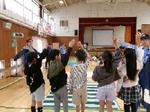 日本の伝統文化にふれる体験の1つに、毎年6年生が「詩吟体験教室」を実施しています。まずは記号の意味などの説明を聞き、その後は講師の先生のまねをしながら、みんなで吟じました。最後には自分たちが作った短歌を詩吟調にあてはめて吟じました。聴きなれない抑揚でしたが、そこは聴こえた通りにすぐ発声ができる子どもの良さを活かし、短い時間でしたが詩吟の世界に親しむことができました。