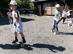 雲一つない秋空の下、1・2年生合同で「本郷ふじやま公園」に遠足に出かけました。1・2年生合同の班を作り、2年生がリーダーとなって1年生と「協力」「楽しむ」をスローガンに掲げて出発しました。今週の水曜日に「交通安全教室」で学んだ、安全な歩行の約束を早速守りながら歩くことができました。本郷ふじやま公園に到着すると、2年生が司会進行を務め「はじめの会」が行われました。地図を見ながら秋探しに出かける班や古民家の施設にある昔の遊び「竹馬」「竹とんぼ」「竹ぽっくり」に挑戦する班、すぐに「だるまさんが転んだ」「花いちもんめ」で遊ぶ班など、それぞれ仲良く助け合いながら過ごすことができました。楽しみにしていたお弁当を食べ、元気をチャージしてまた学校まで戻り遠足の振り返りをしました。来年は今の1年生が2年生となり1つ下の学年をまとめる立場になります。自分たちがしてもらったことを思い出して、活躍してくれることを期待しています。