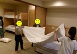 1日目の午前中は、金沢の焼却場や資源選別センターを見学しました。社会科で勉強したことを実際に見たり疑問に思ったことを質問したりと関心をもって学んでいました。午後は、上郷森の家へ行きました。友達と協力してシーツを敷き、キャンドルファイヤーでは、火の子たちが宣言して授かった「協力」「チャレンジ」「メリハリ」「思いやり」の火を囲みながらみんなでレクを楽しみました。