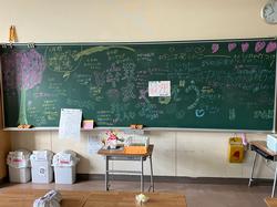 卒業式前日、6年生の各クラスで黒板メッセージをかきました。