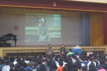 2月13日(水)に、ボランティアさんに感謝する会が行われました。各学年の代表が、日頃お世話になっているボランティアの方々へ、感謝の気持ちを伝えました。今年は、お話の会の方による全校児童への読み聞かせも行われ、みんな楽しそうに話を聞いていました。 |