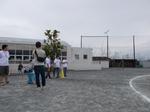 みんなが完成した後、校庭で実際に飛ばして飛距離を競いました。