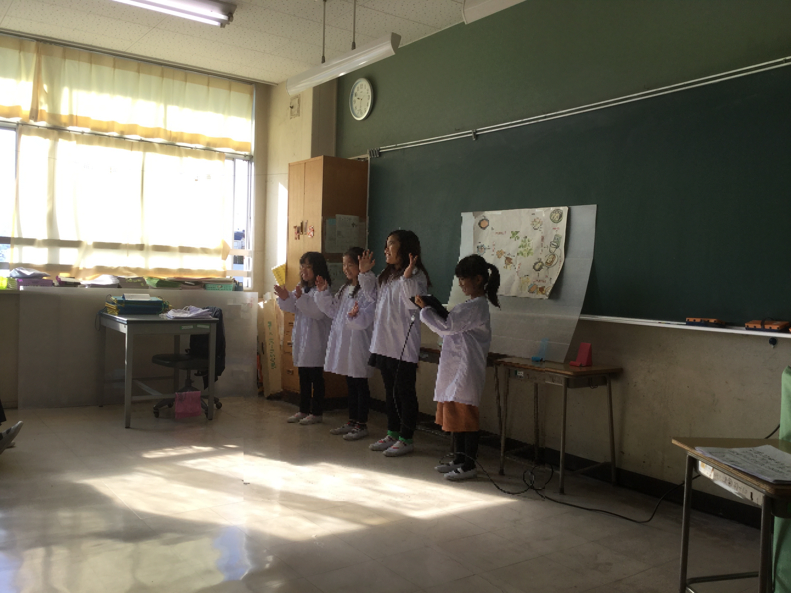 3年生ではいきいきデーに向けて、劇にしたり、タブレットを使ったりして準備をしてきました。 1組は大豆博士になり、グループに分かれて大豆の魅力や作り方などの説明をしました。表や絵にまとめたり、グループによって発表の仕方を工夫したりして、より大豆について知ってもらえるように子どもたちで考え合うようにしました。 |
