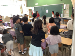 この日は朝、応援団が教室に来て応援のやり方を教えてくれました。
