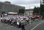 午前8時30分、震度7の地震が発生したという想定のもと、各自治会から多くの参加者が本校へ避難しました。校舎の安全点検を行った後、防災拠点を開設し、人数確認、受け入れ訓練、区割り訓練を経て、開会式が行われました。
