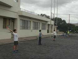 運動委員会はラジオ体操のお手本として練習に取り組んでいます。