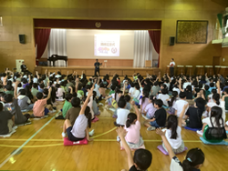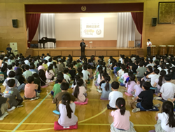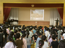 最後に、20周年記念で当時の6年生が作った「七色の架け橋」と校歌を歌いました。