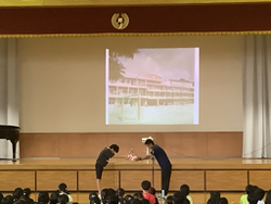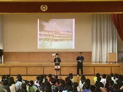 開校記念式では、第1期卒業生でもあるPTA会長さんが開校当時の様子を話してくださいました。