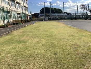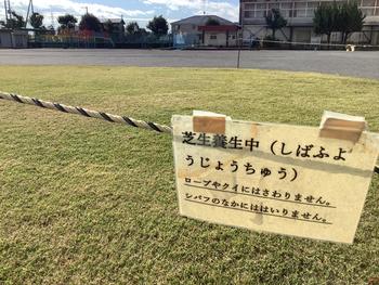 芽が出て根を張るまで、少しの間芝生が立ち入り禁止になります。