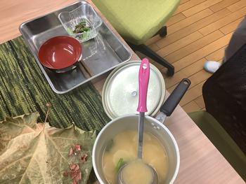 5年生が、わくわく農園で採れた野菜を使ってみそ汁とおひたしをつくりました。