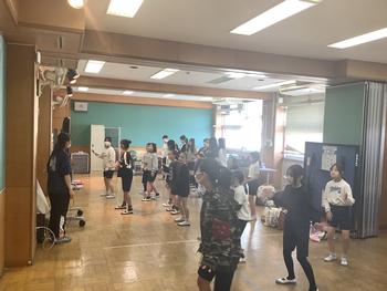 ケアプラザでの発表を目指し、施設の方にきていただき、デイサービスを利用するお年寄りの様子を体験する機会をいただきました。