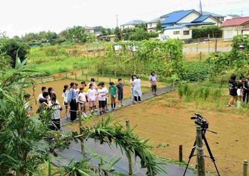 水田には、軍手をして稲刈りを心待ちにしている子どもたちがいました。