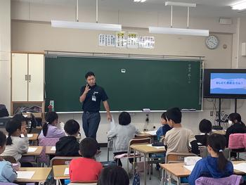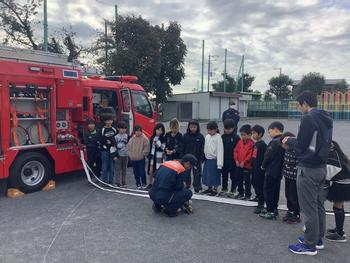 「火事からまちを守る」の学習で、泉消防署の消防士さんに来ていただき、「おでかけ防災教室」を実施しました。