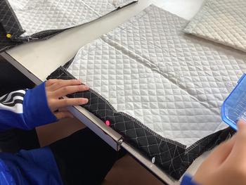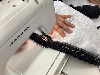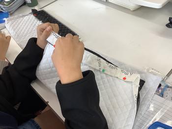 布の裁断のための印をつけたり、慎重にミシンを進めたり、丁寧に取り組むことができました。