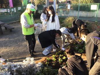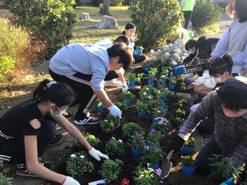 放課後に6年1組の子どもたちが、下和泉公園に花を植えました。