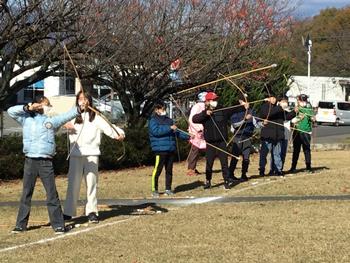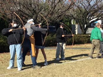 岩宿遺跡グループは、弓矢体験と勾玉づくりをしました。気持ち良い初冬の日差しを浴びての体験は、忘れられない思い出になりそうです。