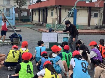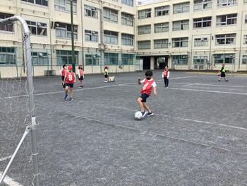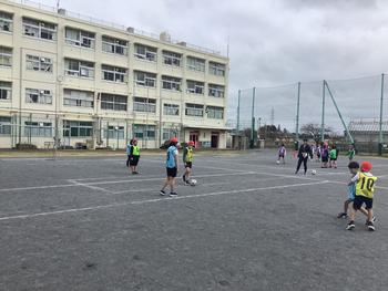 コート中央はボールを手で扱ってもいいゾーンがあるルールで試合をします。