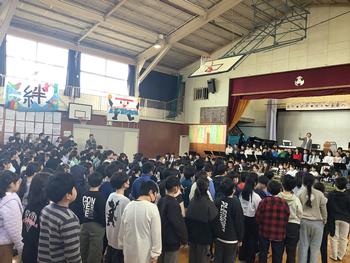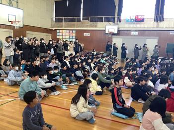 全校合唱は「大切なもの」。いつもは全員で歌いますが、今日は1年生から5年生による、6年生へのプレゼントです。