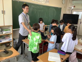 「音のせいしつ」の導入の場面で、用意された楽器を鳴らし、気づいたことを共有していきました。