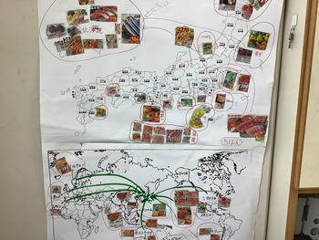 チラシをまとめた地図を見て、お店の工夫について話し合いました。