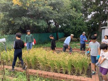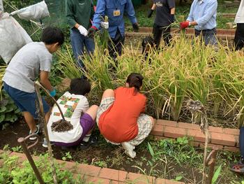 わくわく農園の田中さん、早川さんにお手伝いいただき、稲刈りをしました。
